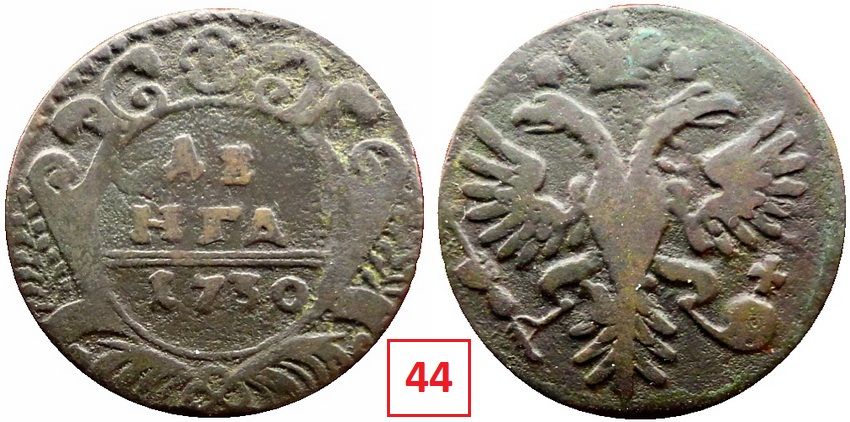 Доброго вечера. Просьба в тему предоставлять фото только деньги 1730 года. Выпуск деньги производился на Красном монетном дворе г. Москва исключительно путем перечекана. Фото необходимы для исследования производства монеты, составления технологических цепочек (ТЦ) замены штемпелей, определение редкости отдельных разновидностей и составления статистики известных экземпляров редких разновидностей. В одной из тем мы начали составлять статистику редких разновидностей, начав с «Малого Орла». Из этого раздела в дальнейшем и будет пополняться определенная тема статистики деньги 1730 года по предоставленным фото. Редких разновидностей деньги в 1730 году имеется достаточное количество. Это видно и по классификации Руководства ЦФН. В дальнейшем на базе этих исследований будет создаваться Каталог деньги 1730 года.