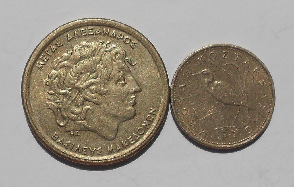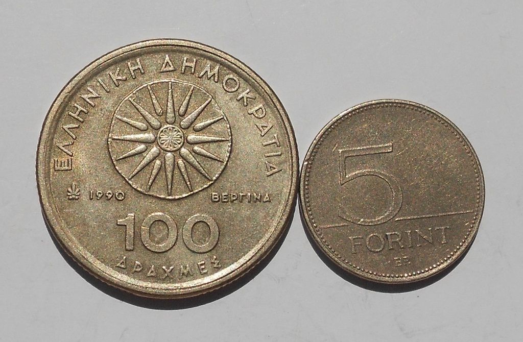 Греція 100 драхм 1990 р. Угорщина 5 форінтів 2004 р.