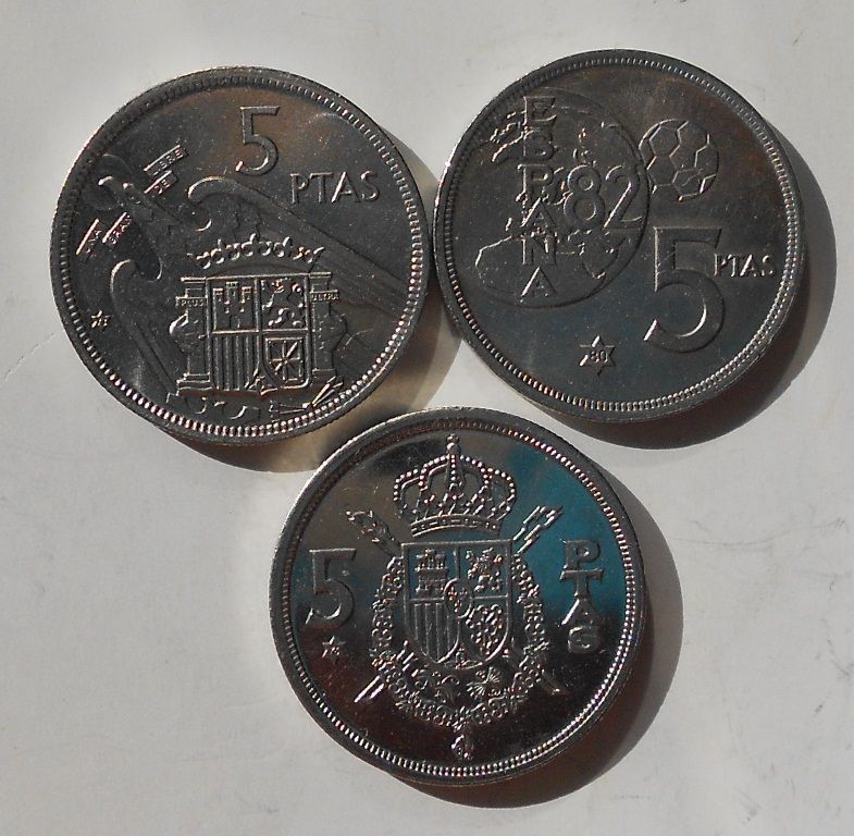 Іспанія 5 песет 1973 р., 5 песет 1980 р., 5 песет 1976 р.