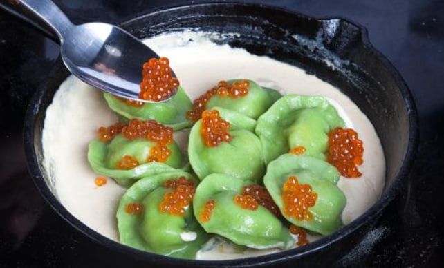 - Бармен, одна порция пельменей с красной икрой! И сделайте их особенно роскошными, с яркой презентацией!