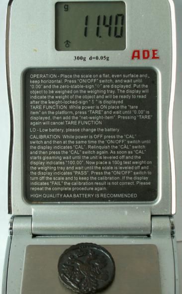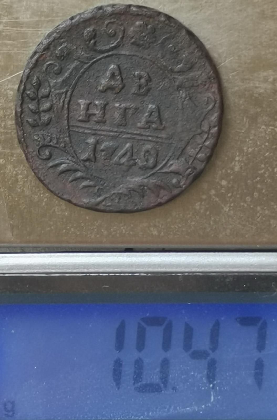 Рекордсменка в недовесе 1740 года среди деньги выпуска Екатеринбургского монетного двора с весом в 3,20 гр., который составляет 39,07%, от установленного среднего веса для деньги в 8,19 гр. Взвешивание проводилось на лабораторных весах. Фото прилагаю.