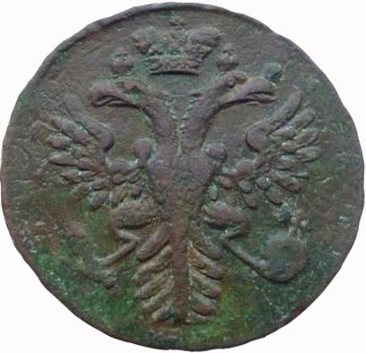Аверс: двуглавый орёл образца 1730 г., увенчанный тремя коронами. В лапах орла: в правой - скипетр, в левой - держава с крестом.