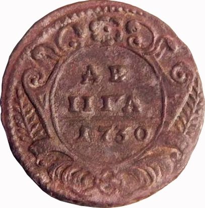 1736. Денги временного двора Площильной мельницы на реке Яузе и Екатеринбургского двора