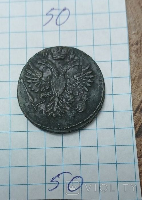 Доброго вечера. Недавний проход деньги перечекана выпуска Красного монетного двора 1730 года. Монета из земли. 2-й шаблон реверса. Гурт сетчатый. Со старта в 1 гривну, через 88 ставок, достигла финишной цены в 931 грн. Проход на украинском аукционе 07.04.2024 года. Фото прилагаю. :hi: С уважением.
