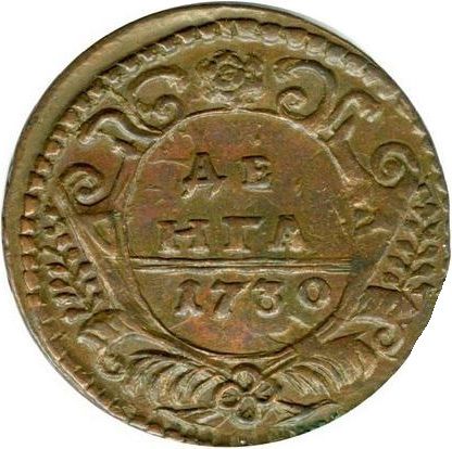22. Аверс: орел с языками, детально проработанный (он же: "ажурный", "украшенный"), образца 1730 г. Корона открытого типа. В крыльях по 9 и 10 перьев, с остями. Хвост по четыре ряда перьев с каждой стороны, с остями. Крест державы узорный. Навершие скипетра в форме трилистника (ТЦ с №8).