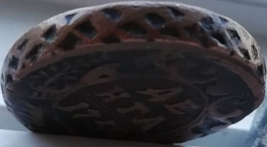 Доброго вечера. Деньга рекордсмен по недовесу в 1744 году с весом 2,15 гр. на лабораторных весах или 2,10 гр. на электронных весах, что показывает на возможную и допустимую поправку в весе, как первых, так и вторых весов. Фото монеты прилагаю. Обращаю внимание на толщину монетного кружка, равную 0,85 мм. При такой толщине монетного кружка говорить про гурт монеты просто бессмысленно. Вероятно, что конкретно этот кружок-заготовка не попадала в станок для установления гурта. Монета оказалась без гурта. С уважением.