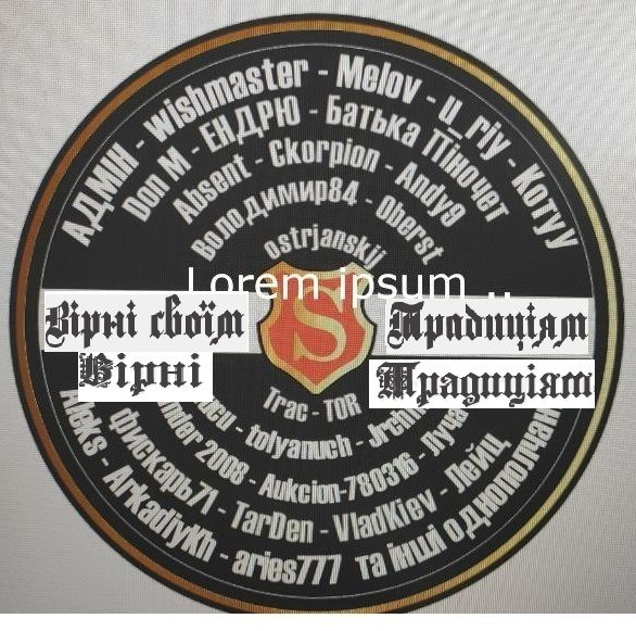Мені дуже подобається "Вірні своїм традиціям" шрифт № 1 (Дойче готік). А слави зовсім не прагну