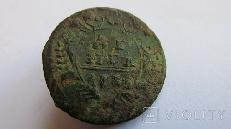 Руководство ЦФН классифицирует эту разновидность деньги следующим образом: 35а - аверс: орёл особого рисунка, образца 1730г., с остями в крыльях, по десять перьев в каждом крыле, хвост орла маленький, по четыре ряда перьев с каждой стороны, крест державы простой, центральная корона открытая, (в народе "толстый", "кислый"), реверс: шаблон №2, розетка пятилепестковая в форме цветка, боковые ветви - тринадцать листочков с одной стороны и одиннадцать с другой, нижние ветви пальмовые с обвязкой (бантом), монета встречается намного реже. Фото и выписку из Руководства ЦФН прилагаю. :hi: С уважением.