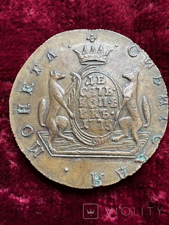 Доброго вечера. :) Недавний проход 10 копеек, монета сибирская 1773 года, КМ. Екатерина II. Общегосударственный выпуск для регионов Сибири. Проход 01.11.2024 года, на украинском аукционе. Гурт шнуровидный. Со ставки в 1 грн., через 100 ставок с финишной ценой 12 782 грн. Монета не из земли. Фото прилагаю. :hi: С уважением.