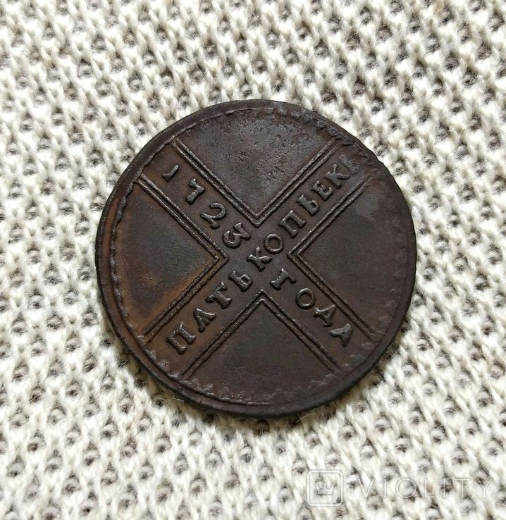 Доброго вечера. :) Недавний проход 5 копеек 1723 года, без обозначения монетного двора. Петр I Алексеевич. Набережный монетный двор. Проход 11.11.2024 года, на украинском аукционе. Гурт сетчатый. Со старта в 1 грн., через 57 ставок с финишной ценой 8 001 грн. Монета не из земли. Фото прилагаю. :hi: С уважением.