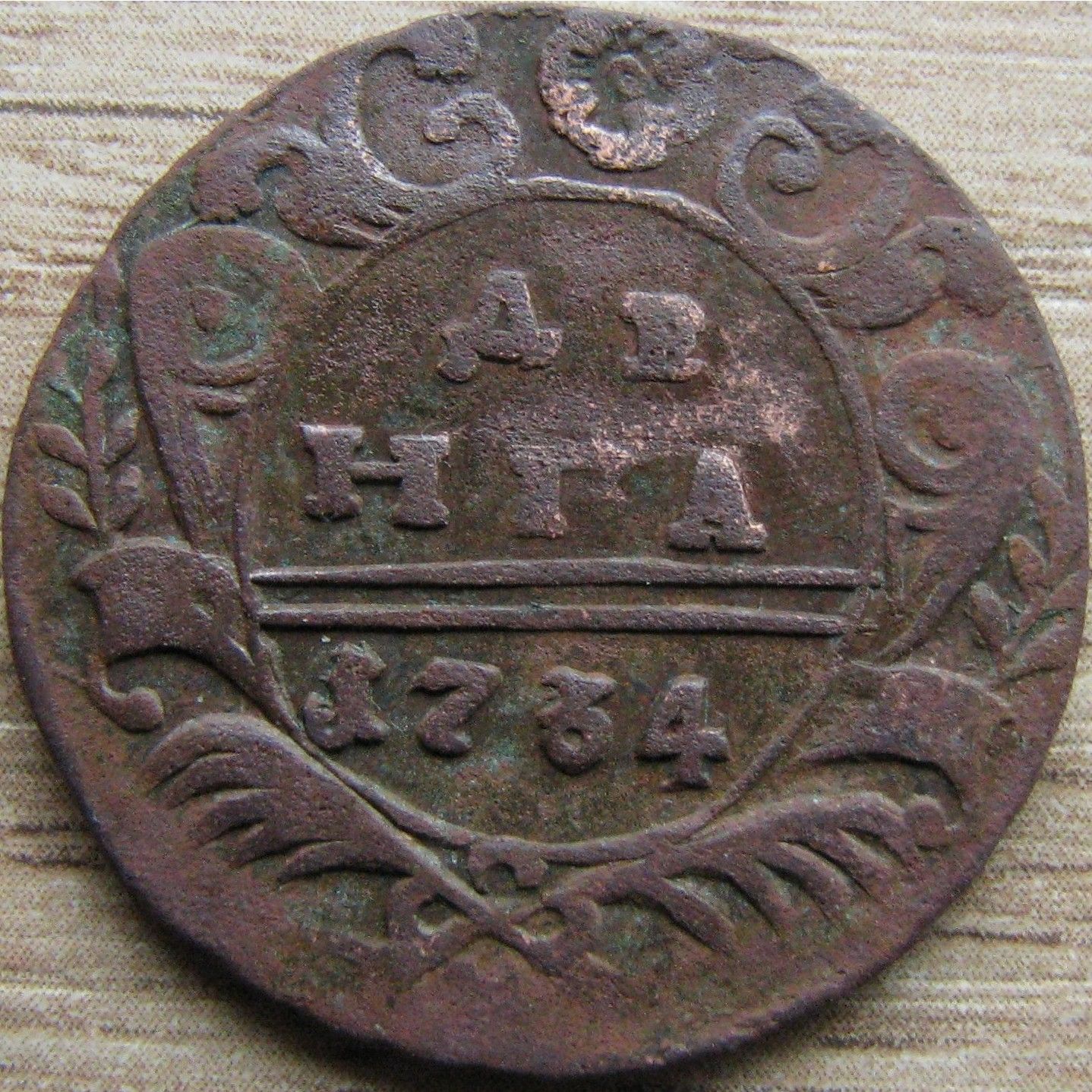 Ще одна монета 1734 року, начебто нічого цікавого. Хоча я брав її як цікавий вид. Вона була під слоєм грязі і реверс читався як з особливою розеткою, а аверс, вісім і десять пір'їнок у крилах. Ну а коли змив грязюку то виявилося що нічого такого там немає. Але, виявився цікавий брак, навіть незнаю як назвати цей перекос, по факту то роздільні риски набиті на вскось, це я так уразумів. Що скажите шановне панство?