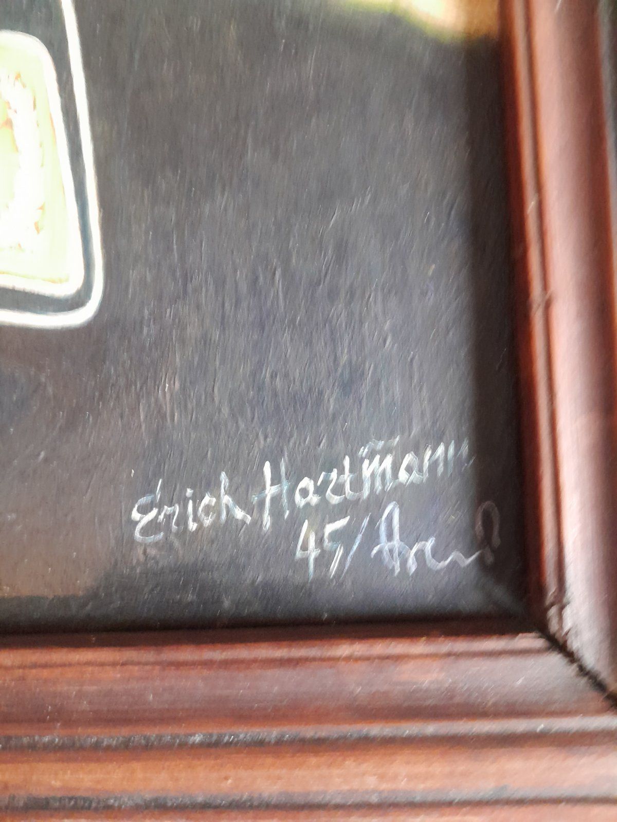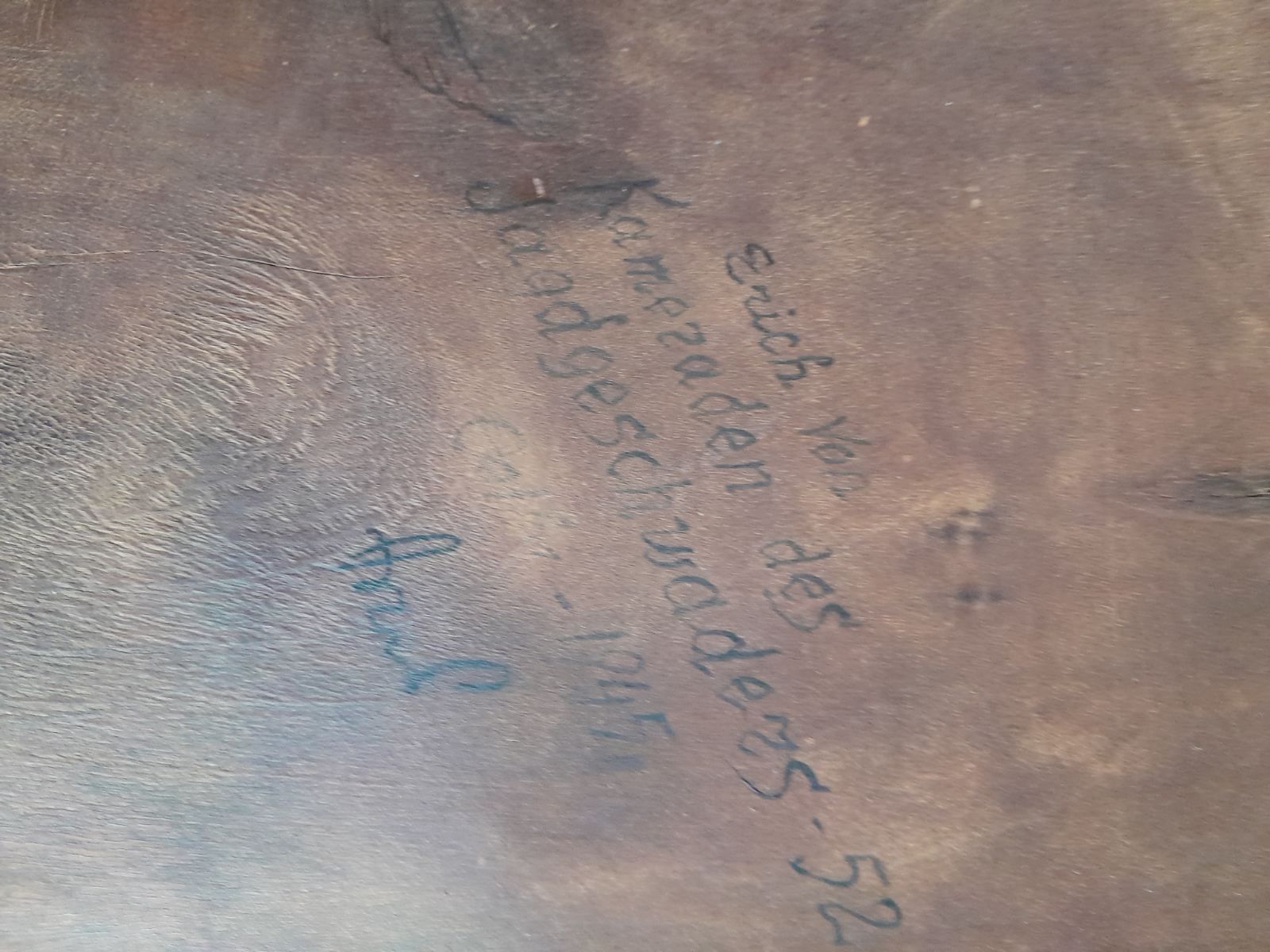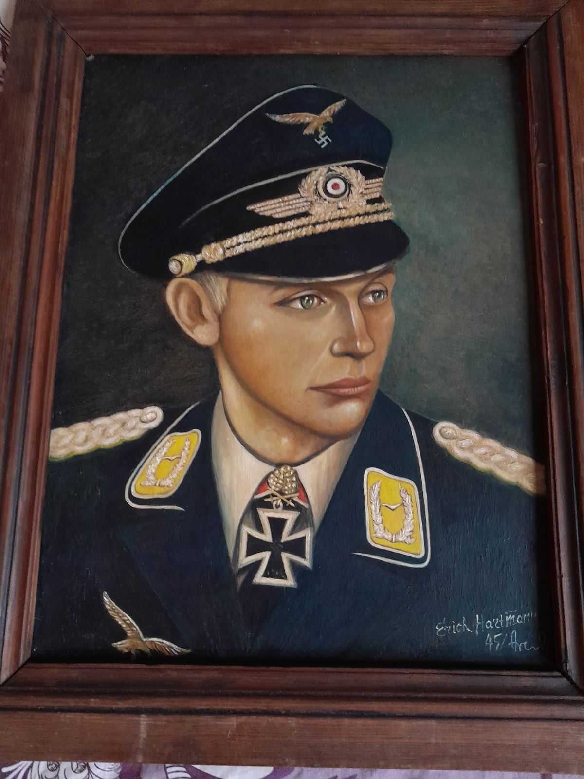 Доброго дня, колеги. Потребую допомоги у визначенні та приблизної оцінці картини. Клієнт пропонує, я поки не можу розібратися чи вона коштує хоч щось. Інформації поки замало (розміри та інш.). Продавець пише: "Портрет намалювали товариші винищувальної ескадрилії 52, в 1945 році.".