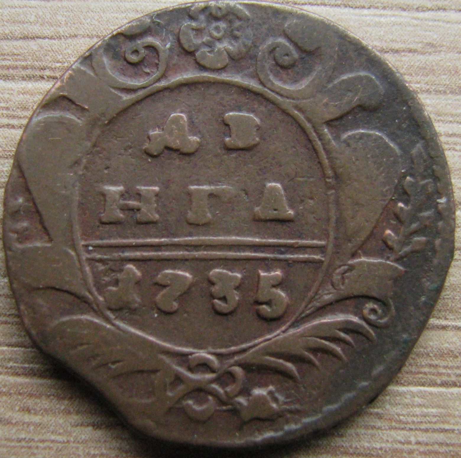 Доброго вечера. Монета безусловно интересная. ;) Орел обр. 1736 года с коронами большего размера. По этой причине ее действительно легко принять за московский выпуск 1736 года. Выкрошка на дате выпуска деньги добавила интриги. К сожалению одноштемпельной монеты, как по аверсу, так и по реверсу не нашел у себя в "закромах" ни в 1735-м, ни в 1736 году. По этой причине определить ее в ТЦ мне пока не удалось. Для подтверждения своих слов, что монета имеет шанс быть переходной в ТЦ 1735-36 годов даю фото с однотипной деньгой с орлом обр. 1736 года с датировкой выпуска 1735-м годом. :hi: С уважением.