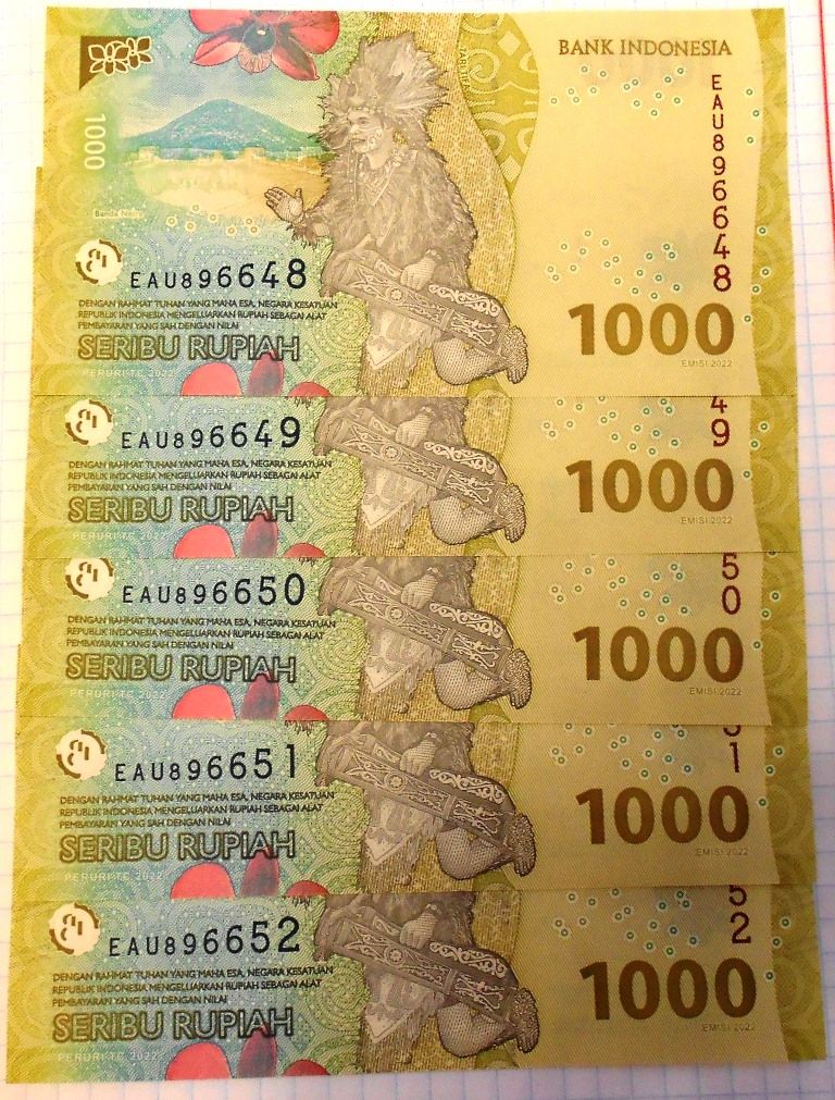 Індонезія 5 шт. по 1000 рупій 2016 р. UNC.