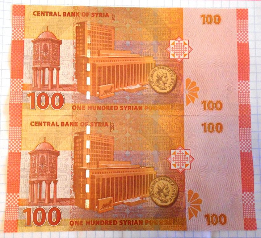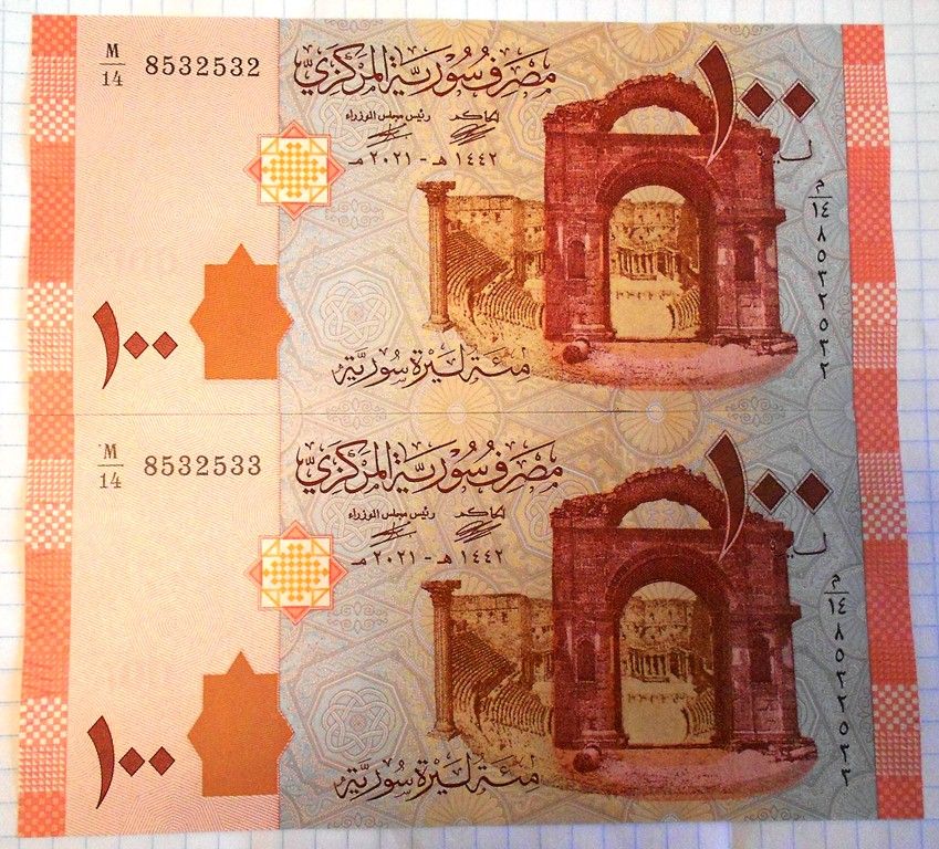 Сирія 100 фунтів 2021 р. UNC (два номери поспіль).