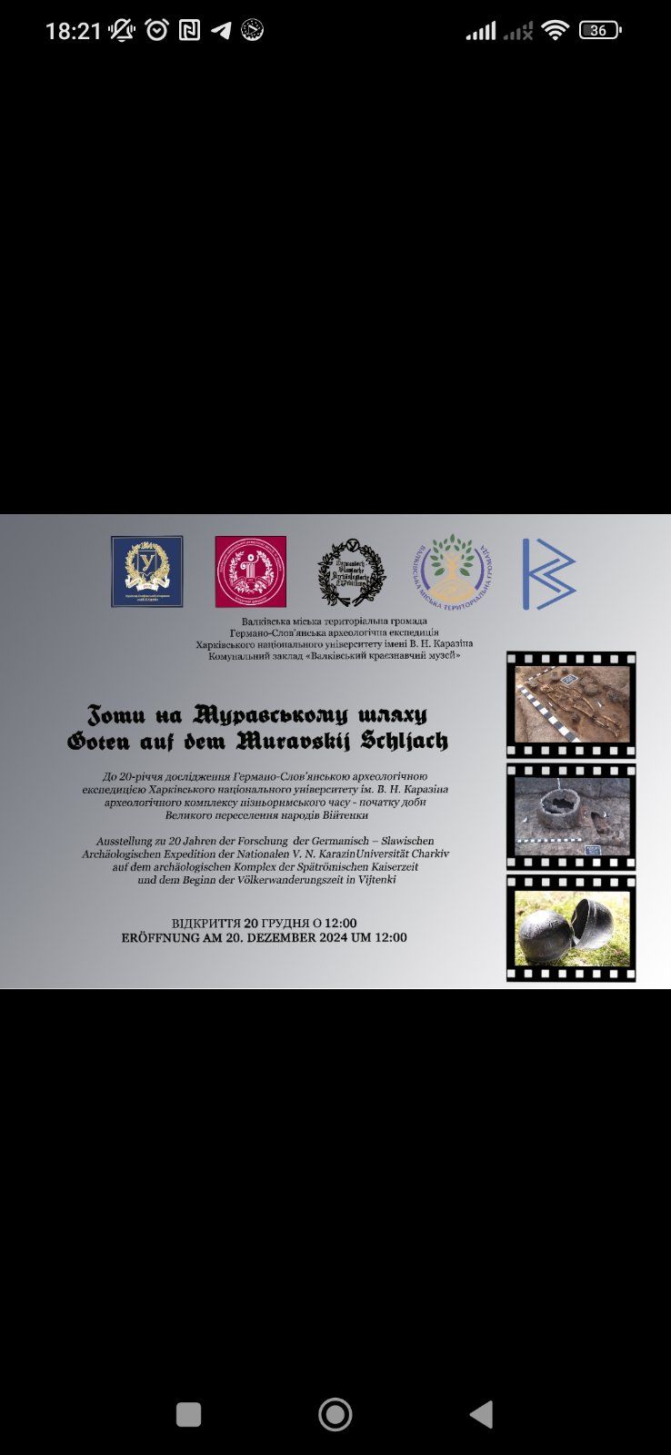 Доброго дня. :) Расскажу более подробнее о нашей встрече однополчан на юбилейном отчете по исследованиям Германо-Славянской археологической экспедиции за 20-ти летний период. :shok: Спасибо всем нашим уважаемым коллегам однополчанам, которые смогли прийти на это интереснейшее мероприятие и поддержать ребят археологов Харьковского университета им. Каразина. ;) В краеведческом музее г. Валки 20.12.24 проходила встреча с руководителем археологической экспедиции проф. М. В. Любичевым и археологами непосредственно проводившими раскопки и представившими множество интересного археологического материала, полученного в результате раскопок в районе пос. Войтенки. По очень благоприятному стечению обстоятельств, кроме встречи с археологами, нам удалось еще и организовать встречу с нашими однополчанами. Это отметил наш уважаемый коллега Володимир84. ;) Дополню его рассказ фото отчетом из краеведческого музея г. Валки. :hi: