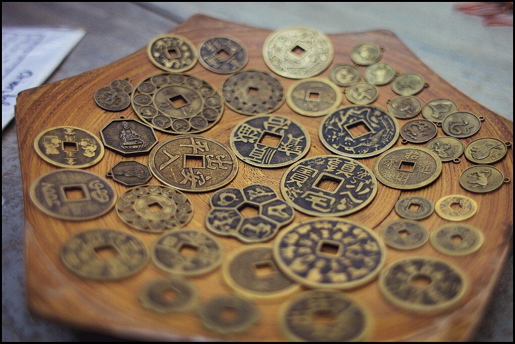 Хоча китайські нумізматичні обереги не є офіційною формою валюти, раніше вони ходили на китайському ринку разом із звичайним державними монетами. Обереги вважалися цінними, оскільки їх часто виготовляли зі сплавів міді, а китайські монети оцінювали за вагою в бронзі чи латуні. У деяких випадках обереги виготовляли з дорогоцінних металів або нефриту . У певні періоди деякі обереги використовувалися як альтернативні валюти . Наприклад, «храмові монети» випускалися буддійськими храмами за часів династії Юань , коли мідна валюта була дефіцитною або коли виробництво міді було навмисно обмежено монгольським урядом.
