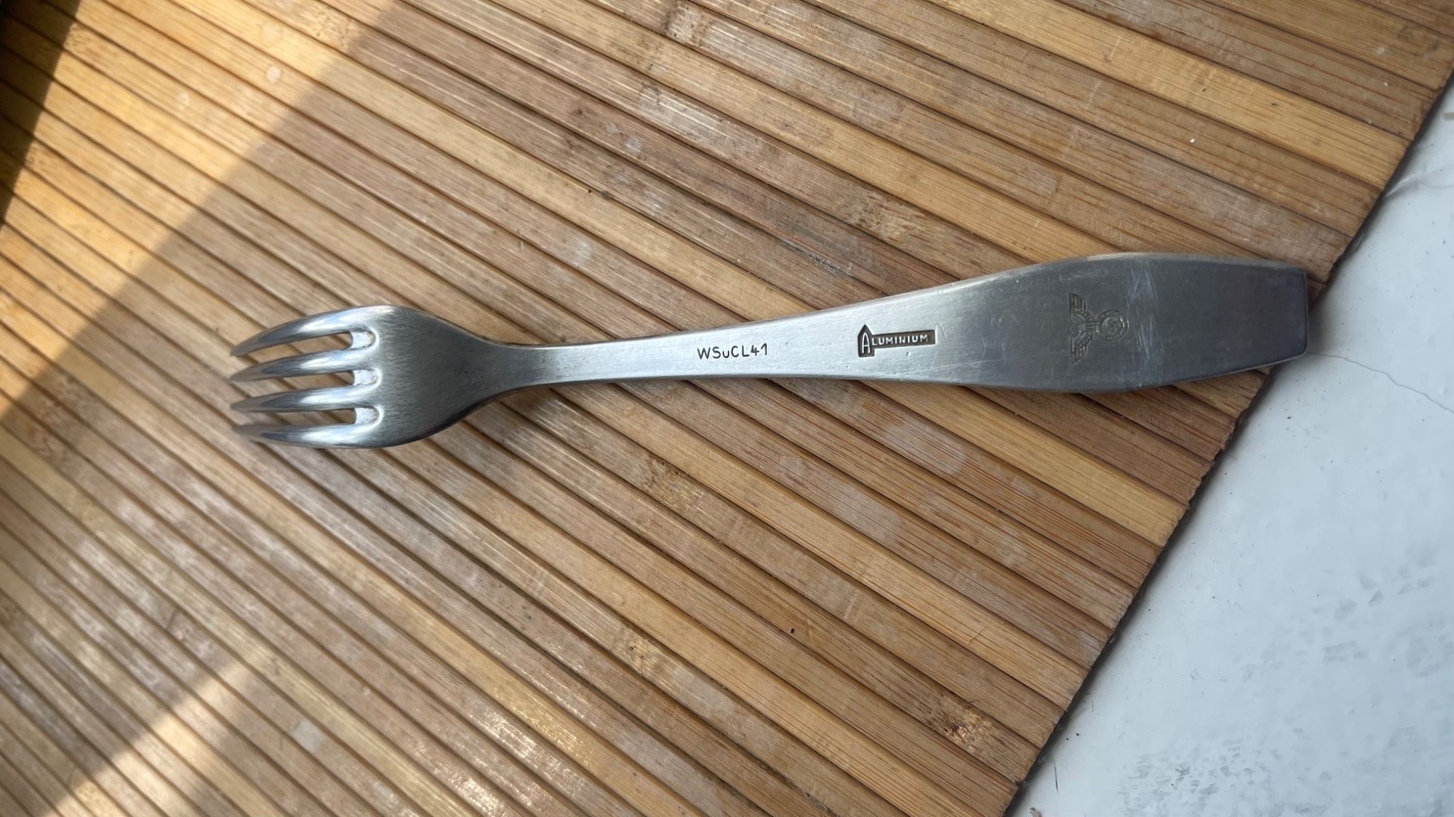 Виделка Вермахта часів війни (1939-1945 роки). Матеріал - алюмінієвий сплав. Всі клейма за матеріалом та виробником добре читаються. Артефакт не несе пропагади давно минулої епохи. Ціна - 1350 грн.