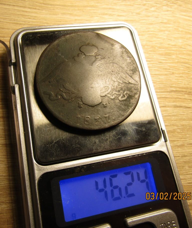 10 копеек 1837 г. (ЕМ КТ, Николай I, масон, медь), крупная монета - вес 46,24 грамма