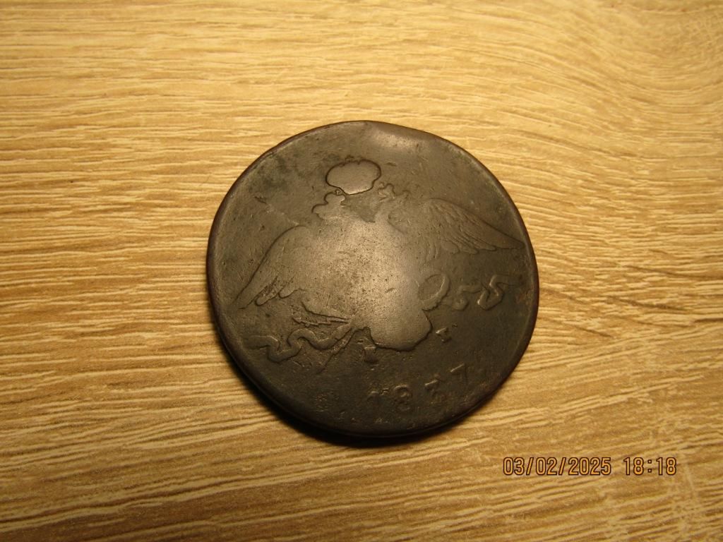 10 копеек 1837 г. (ЕМ КТ, Николай I, масон, медь) - крупная медная монета, вес 46,24 грамма