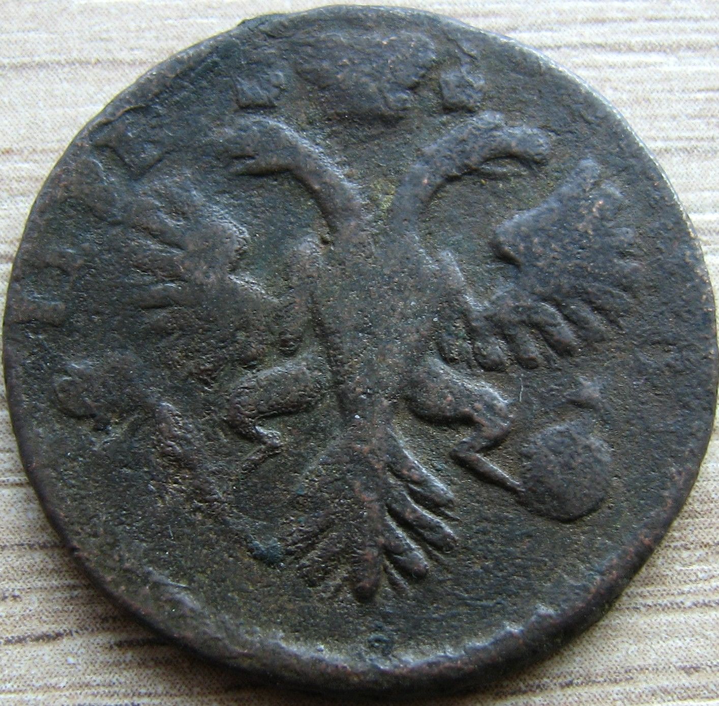 В собранной, по щтемпельным разновидностям, технологической цепи (ТЦ) аверс такого орла был переходным из 1730 в 1731 год в паре со 2-м шаблоном реверса.