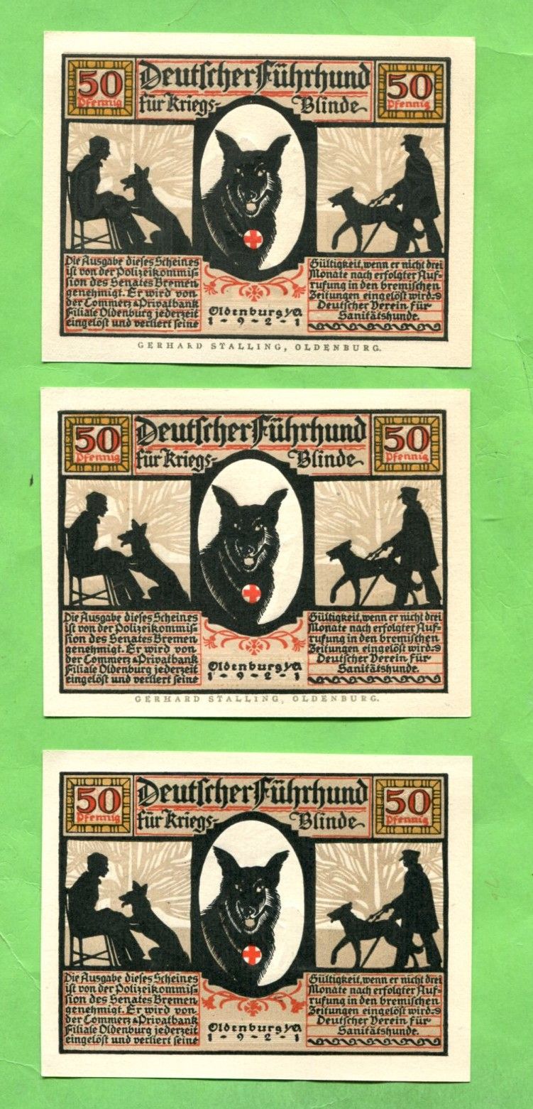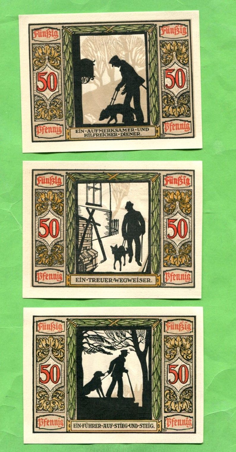 Нотгельд 50 пфеннигов 1921 Германия Ольденбург набор из 6 шт красный крест собака-поводырь
