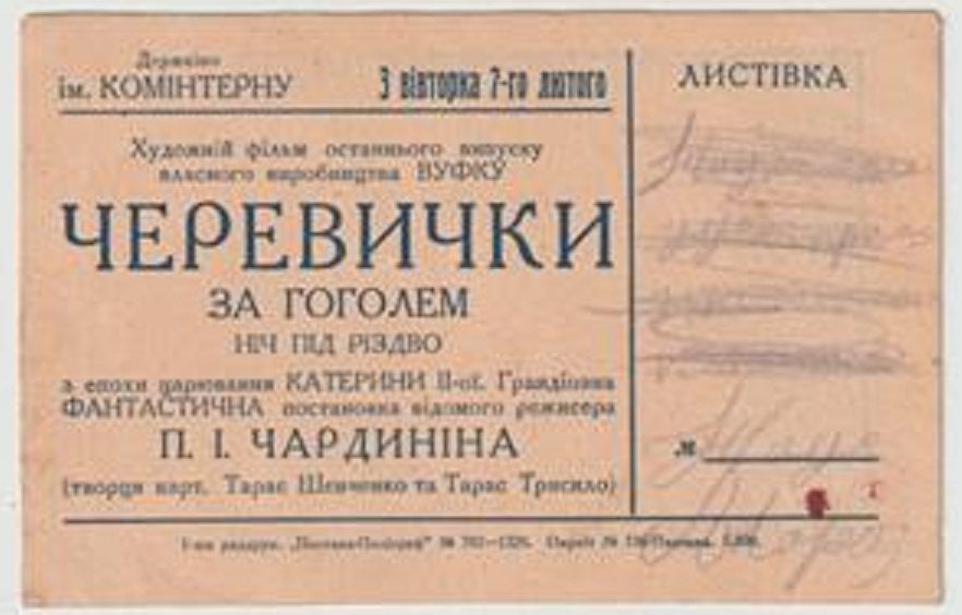 Премьера фильма 13 февраля 1928 (Киев), 27 марта 1928 (Москва) . Возможно листовка к премьере.