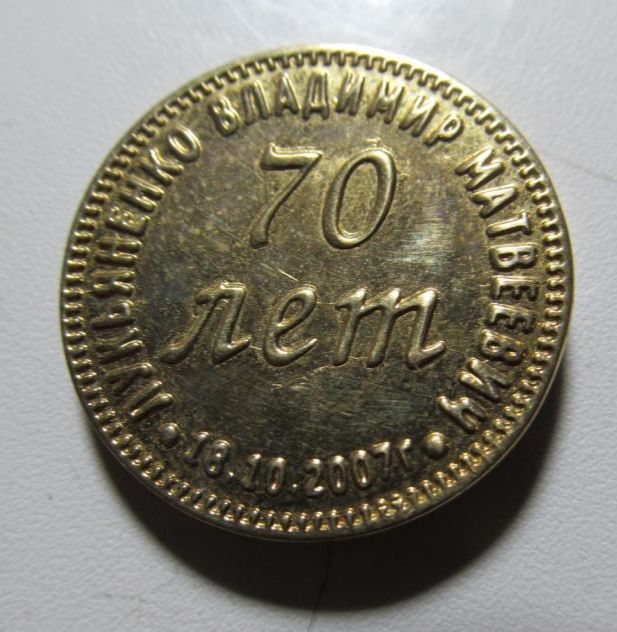 Медаль "70 лет Лук'яненко Владимир Матвеевич 18.10.2007". Срібло. https://uk.m.wikipedia.org/wiki/%D0%9B% ... 0%B8%D1%87