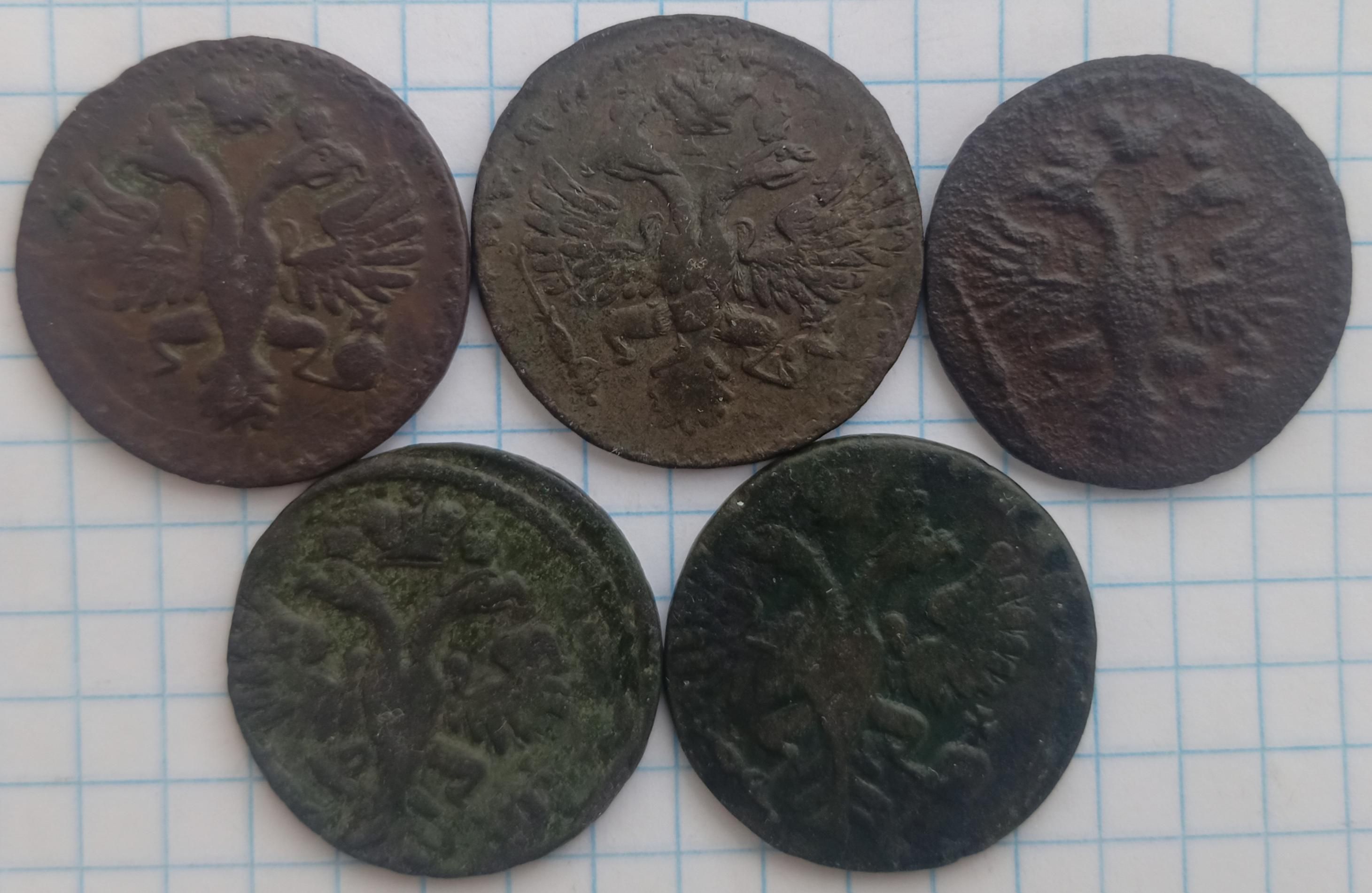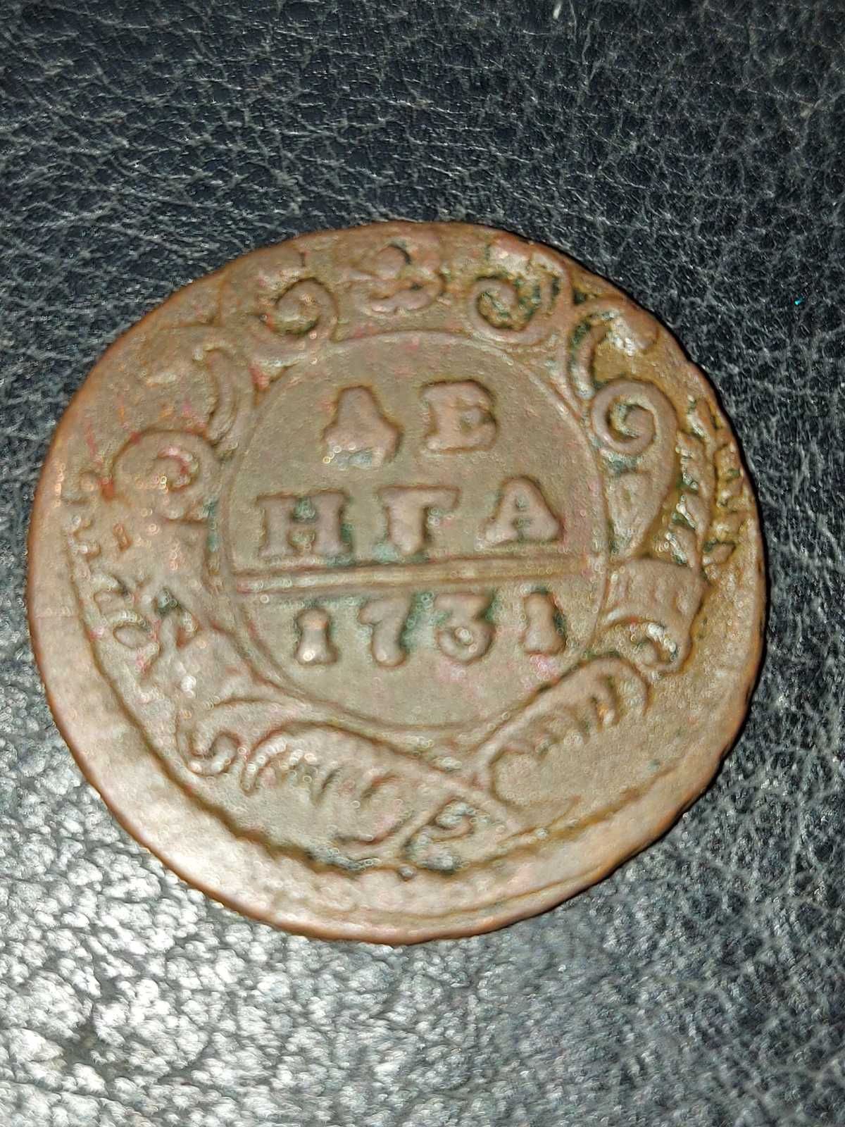 Доброго вечора пане Андрій. :) Видится разрушение штемпеля аверса по всему монетному полю. Длительная работа в производстве монеты. Массовые выкрошки и сколы, предшествующие расколу штемпеля. Монету можно отнести к монетному браку. При массовом производстве деньги путем перечекана в 1731 году брак не из редких. Как пример могу привести деньгу с подобным началом разрушения штемпеля. :hi: З повагою.