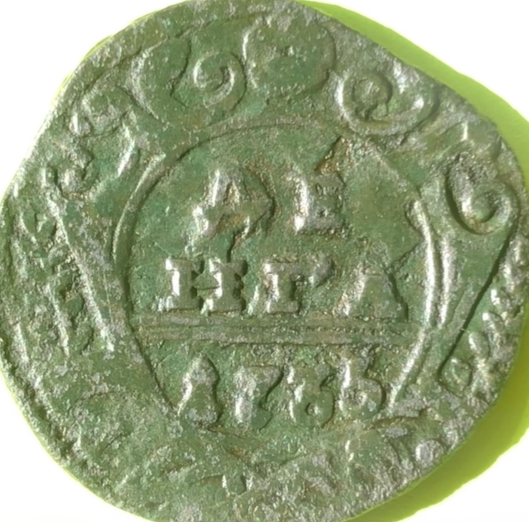 Перечекан 1735 года в пятом шаблоне с пятилепестковой розеткой. Все. Точка.