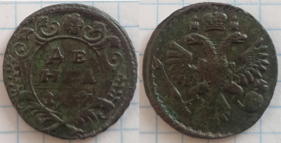 26. Денга 1730-1731 года «Вилы», «Трилистник»
