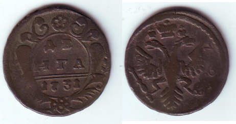 41. Денга 1731 года Орел с хвостом 4-1-4