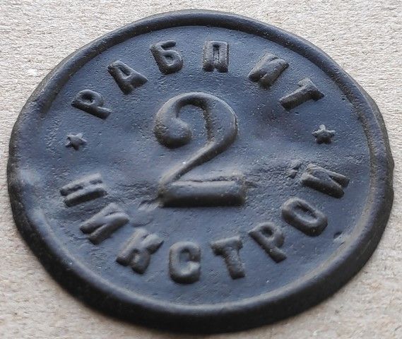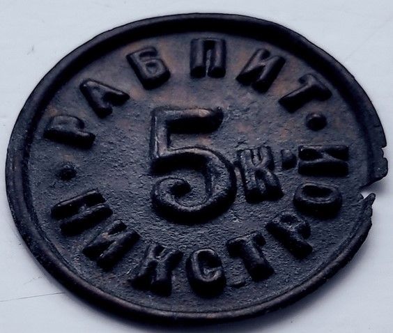 Продовжуючи тему платіжних жетонів закладів харчування: РАБПИТ НИКСТРОЙ, 10, 2, 5 коп.