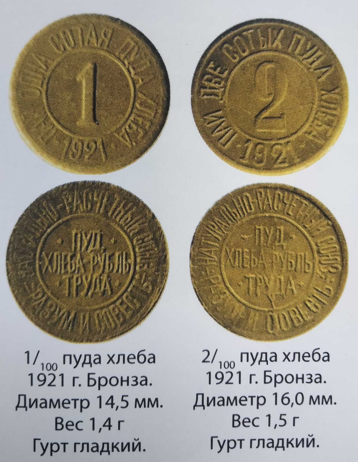 Жетони натурально-розрахункового союзу "Розум і совість" "Пуд хлеба-рубль труда". м. Київ 1921 р.