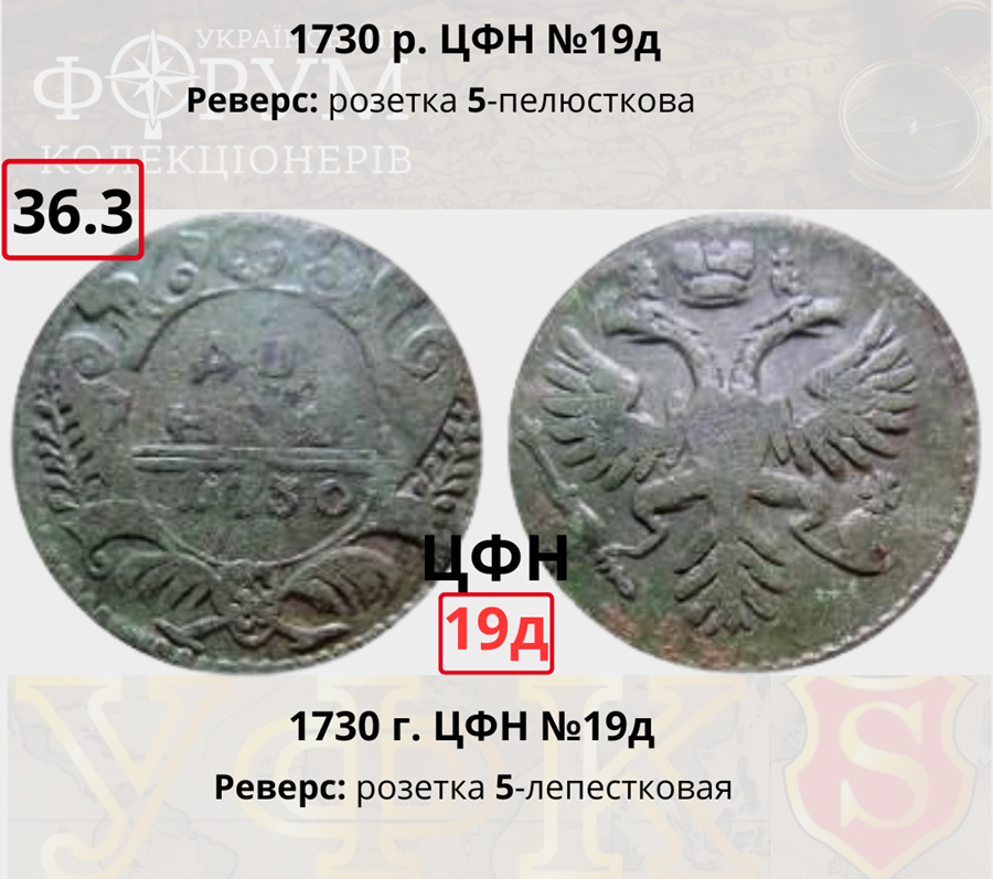 Повернутись до “Каталог-довідник штемпелів деньги та полушки 1730-1754 рр.”