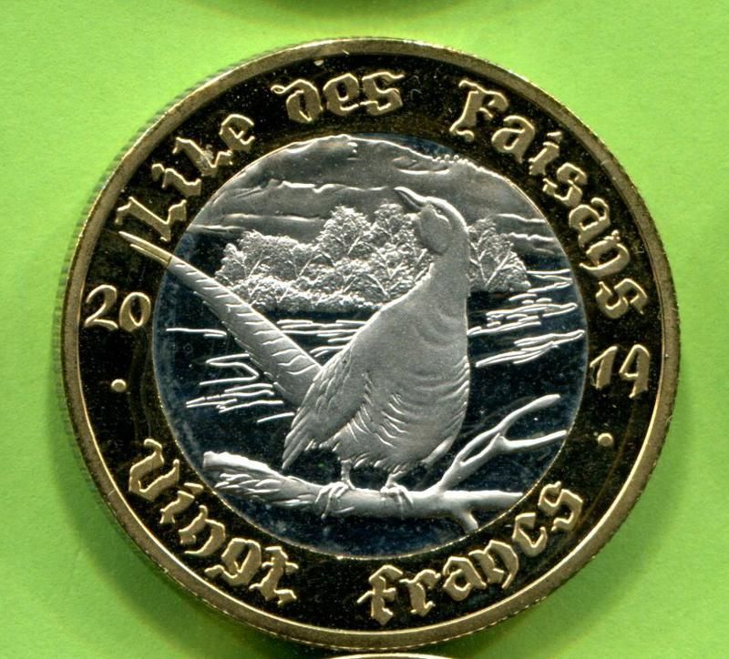 Остров Фазанов 20 франков 2014 кардинал Мазарини фауна птица фазан