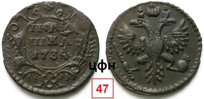 Приведу фото монет 1734 года - ЦФН 25а и своей монеты для более углубленного исследования.