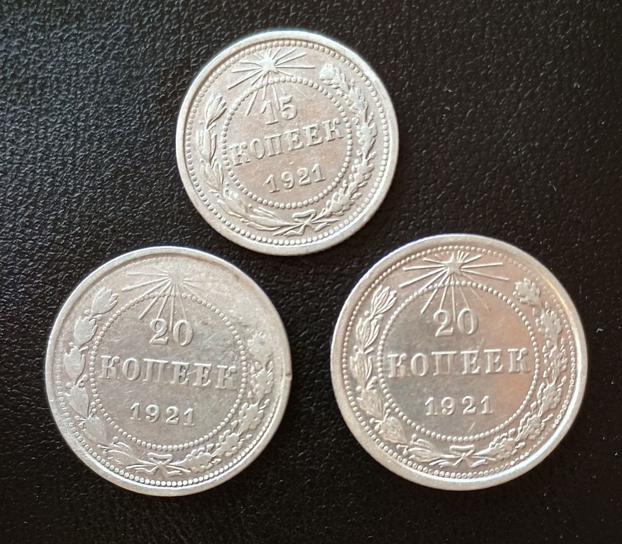 - 15 коп. 1921 р. 1 шт., 20 коп. 1921 р., 2 шт.