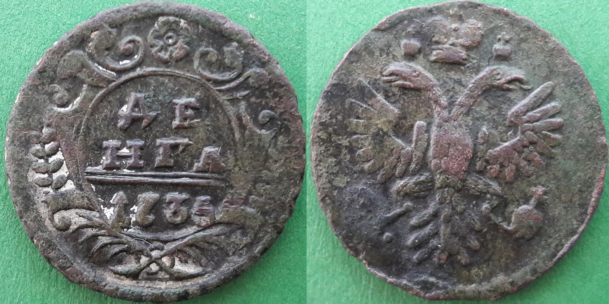 Трішечки для статистики. Думаю після такого шоку в ціні за брак, всіх вже попустило. Там завтра планується ще одна цікава драчка, :mr47_04: правда за рідкісну монету, "медузу". в гарному стані, фінал обіцяє буди цікавим. :scratch_one-s_head: Вболіваємо за наших! :d_good_luck: :JC_handshake: Ну а я пропоную всеж таки дві монетки 1735 року. Одна просто в більш-менш доброму стані, ну а друга поношена але доволі рідкісна. Сподіваюсь Олег Евгенович скаже нам, що там у ньго в статистці. З повагою