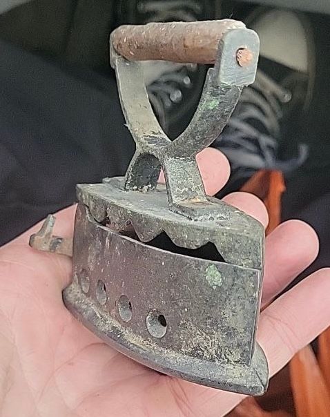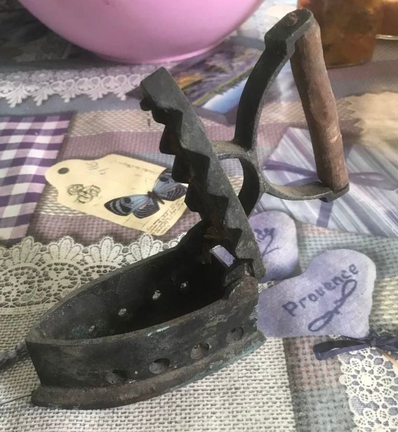 Великі і середні старовинні праски оцінюють десь від 100 до 250 грн (це звичайних форм, бо ті що з завіхрюшками трохи дорожчі), а у Вас манюня - зустрічається рідше. Тому ціна буде дещо вища. Більш точно по ціні поки сказати важко, на Ваш розсуд і з врахуванням попиту.