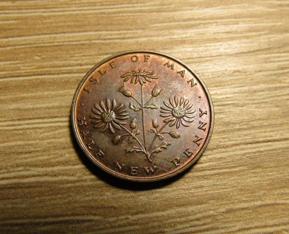 1/2 нового пенни 1975 г. (остров Мэн, коронное владение Британской короны), флора - Якобея обыкновенная