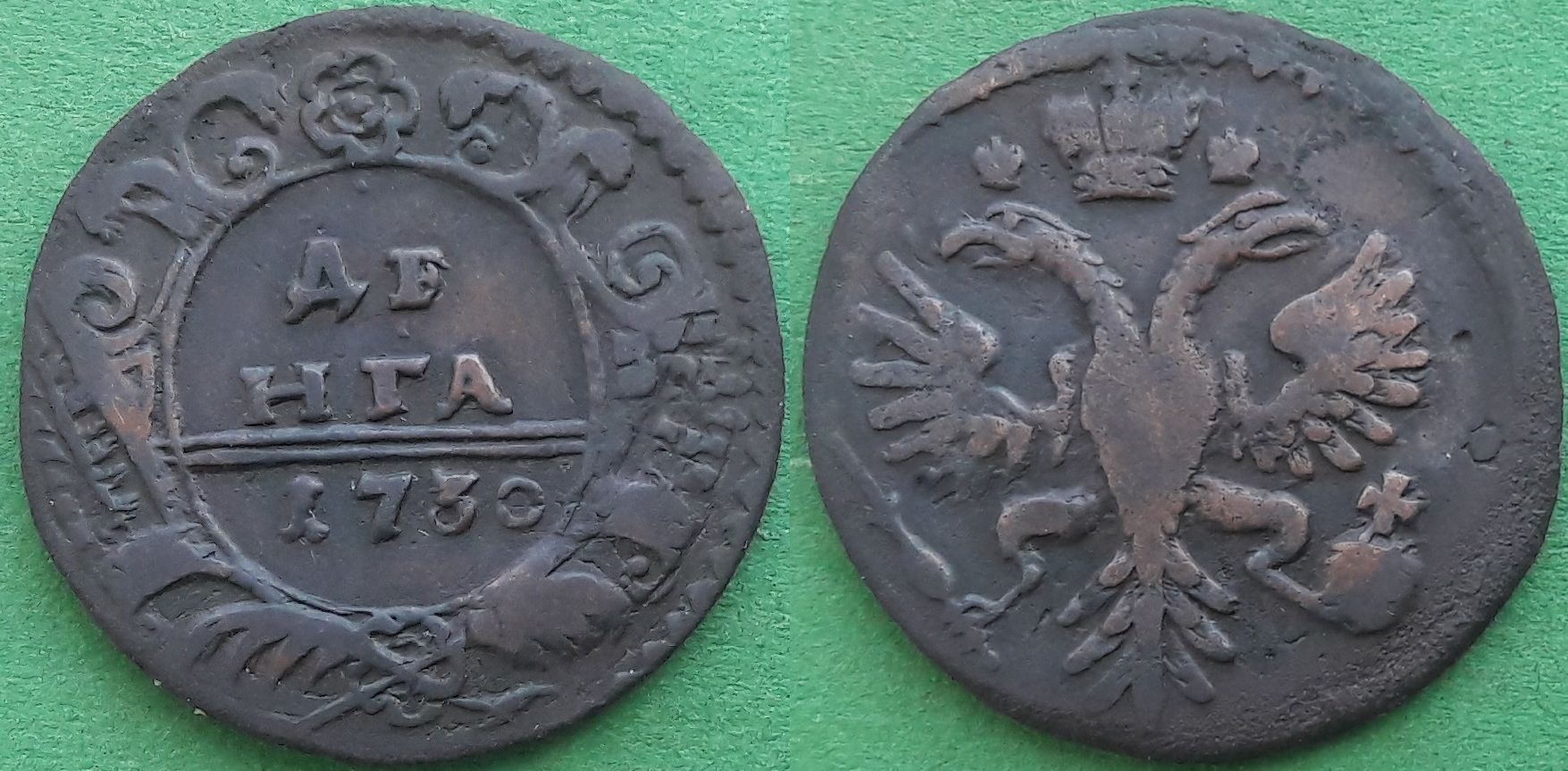 Мое почтение. Все же хочу оспорить или включит режим сомнения по поводу данной монеты. Как говорил один уважаемый человек-"ости они либо есть, либо их нет" Здесь, именно на этой монете мы пытаемся просто привязать, притянуть или показать то чего на самом деле возможно и нет, тем самым мы вводим в заблуждение людей которые просматривают эту тему а так же пытаемся внушить себе и заставить себя поверить что это так и есть. По данной монете мы видим в двух крыльях два элемента в верхней части перьев которые напоминают ости, если быть точнее то в левом крыле, в правом то там даже не полная ость, остальное если честно то не совсем понятно что это, верхние перья в крыльях посеченные и частично раздваиваются. Монета сама по себе побита коррозией. У меня есть (правда 1735 год) так там на реверсе от коррозии чего только нет и подковки и буква О. А теперь представим ситуацию, человек видит образец у нас в таблице, у него есть так же побитая монета на которой просто есть элементы (смещение при тиснении монеты, коррозия, брак и т.д) напоминающие ости. мы ее так же будем включать в таблицу, каталог потому есть какое то сходство что это "ости", "перо" или "язык" а у нас нет одноштемпельной но поставить что то нужно? У меня есть 1735 год "одноязыкая", но это просто сходство с языком . Поэтому мое мнение что нужно или написать что монета сама по себе спорная и выставлена как образец или убрать до появления монеты где сомнений будет минимум. как говорит очень мною уважаемый человек- " ко всем исследованиям нужно подходить с научной точки зрения" то есть быть уверенным ну хотя бы на 80% а здесь у меня уверенности ну может на 50%. Фото крыльев прилагаю. Прошу не принимать мои высказывание негативно. Это мое личное мнение, я то что увидел то и написал. С уважением.