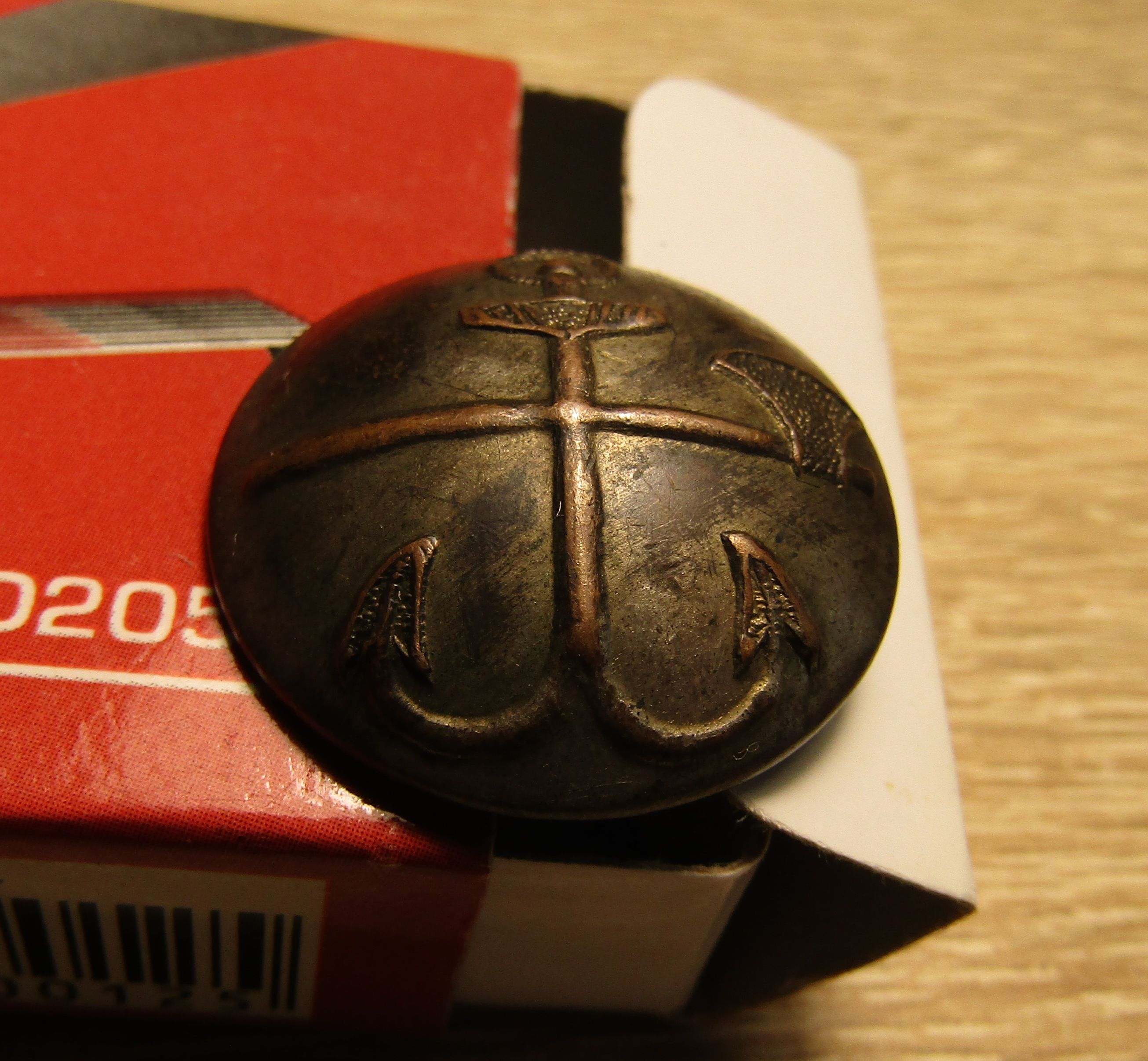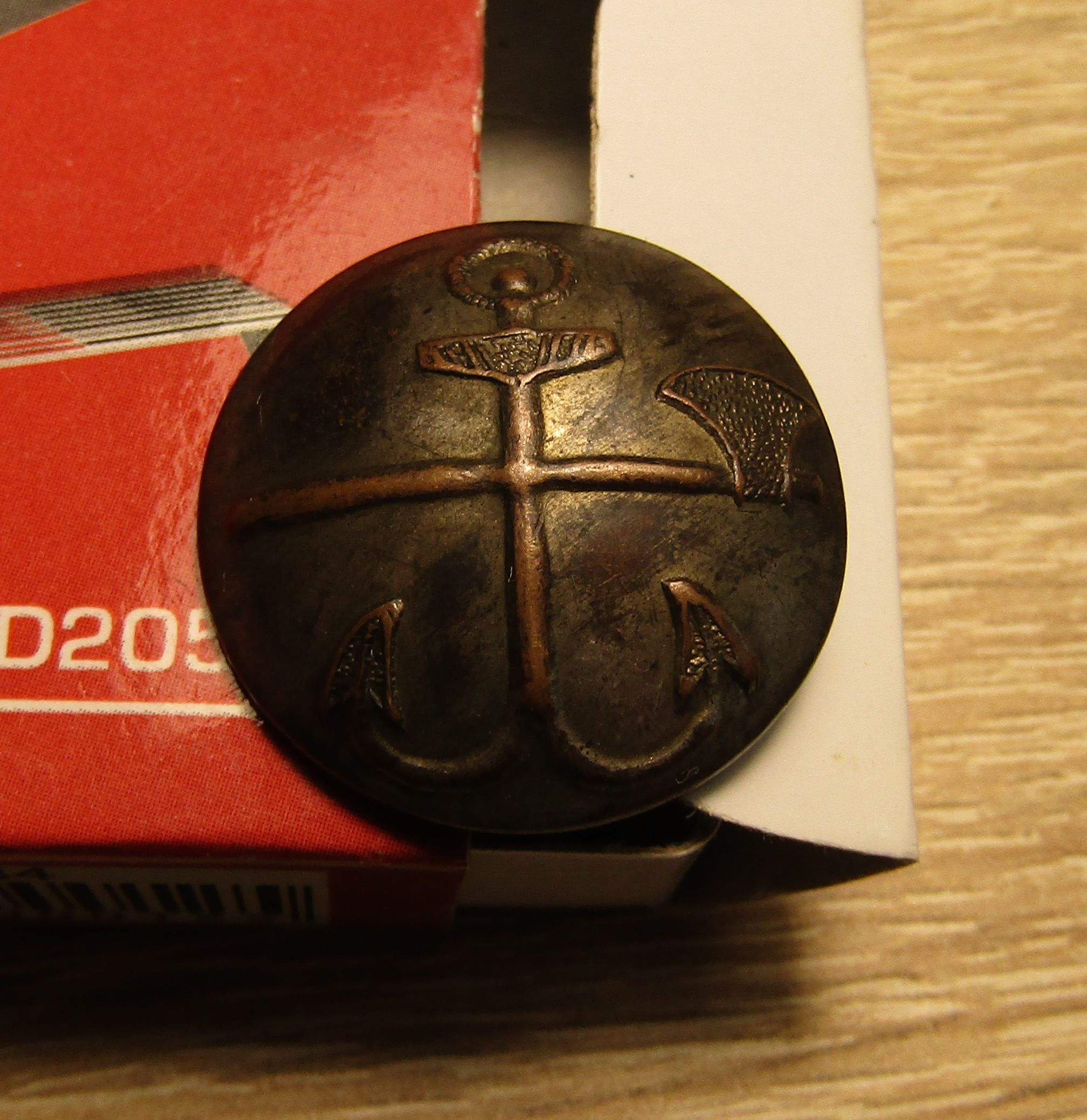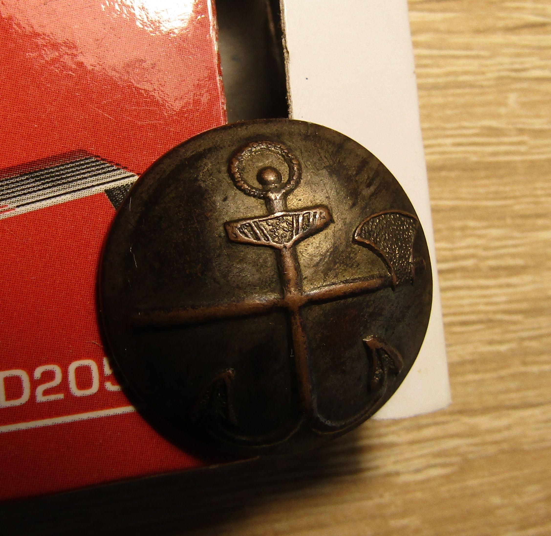 Пуговица РИ (Якорь и топор, Петроградъ). Ведомство путей сообщения, а именно пуговица Корпуса инженеров путей сообщения и нижних чинов (I-я половина 19 века).