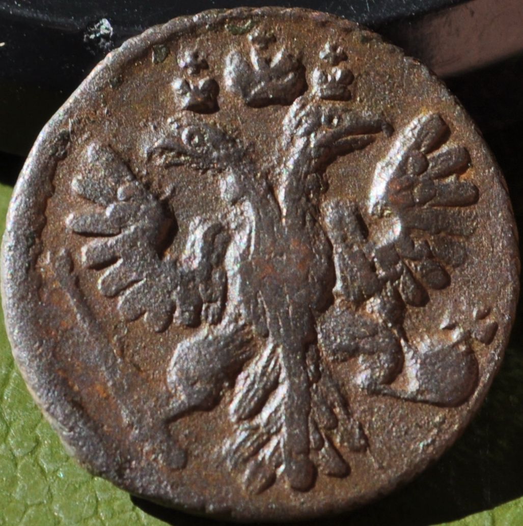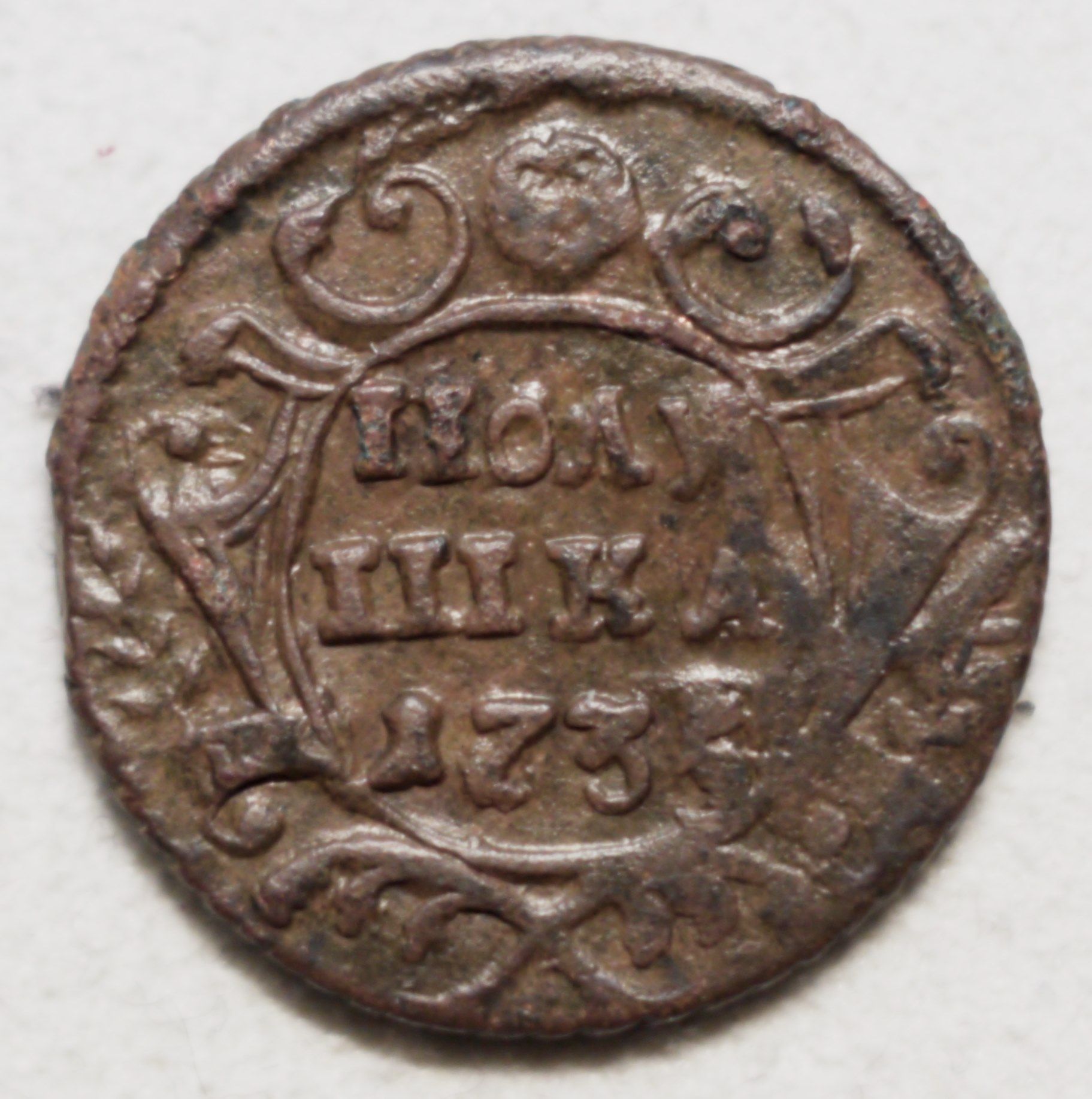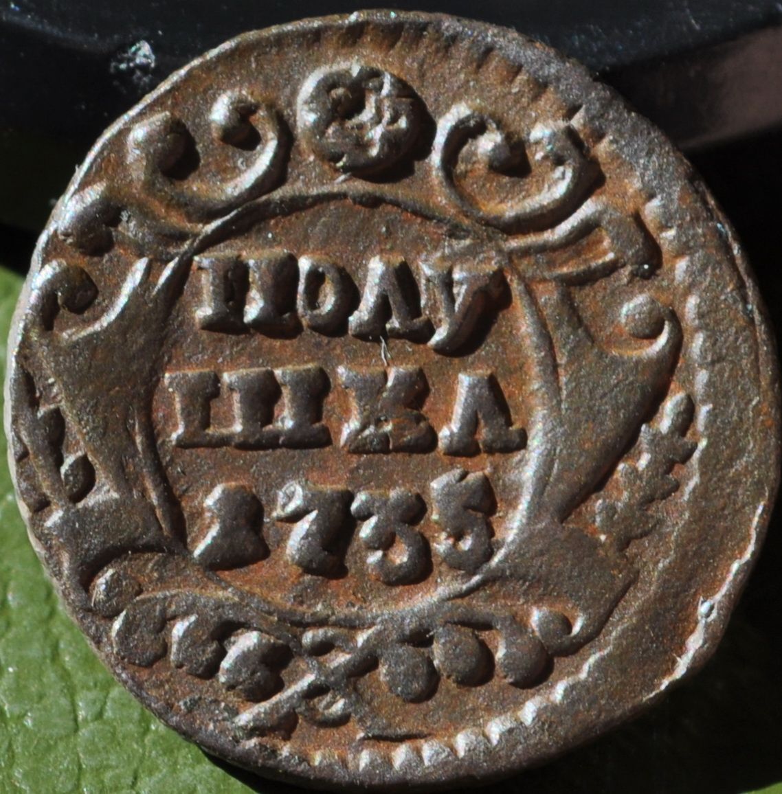 Доброго вечера Андрей. :) Одноштемпельной монеты не нашел, но нашел полушку с аналогичным реверсом, отличающимся только незначительными различиями в расположении и форме отдельных мелких деталей штемпеля. Штемпеля изготовлены одним мастером и одним инструментом. ;) Фото прилагаю. Относительно реверса Вашей монеты. Без одноштемпельного реверса не могу с уверенностью сказать о точном количестве листьев в лавровых ветвях из-за слишком большого количества изготовленных штемпелей полушки в 1735 году. :scratch_one-s_head: :friends: З повагою.