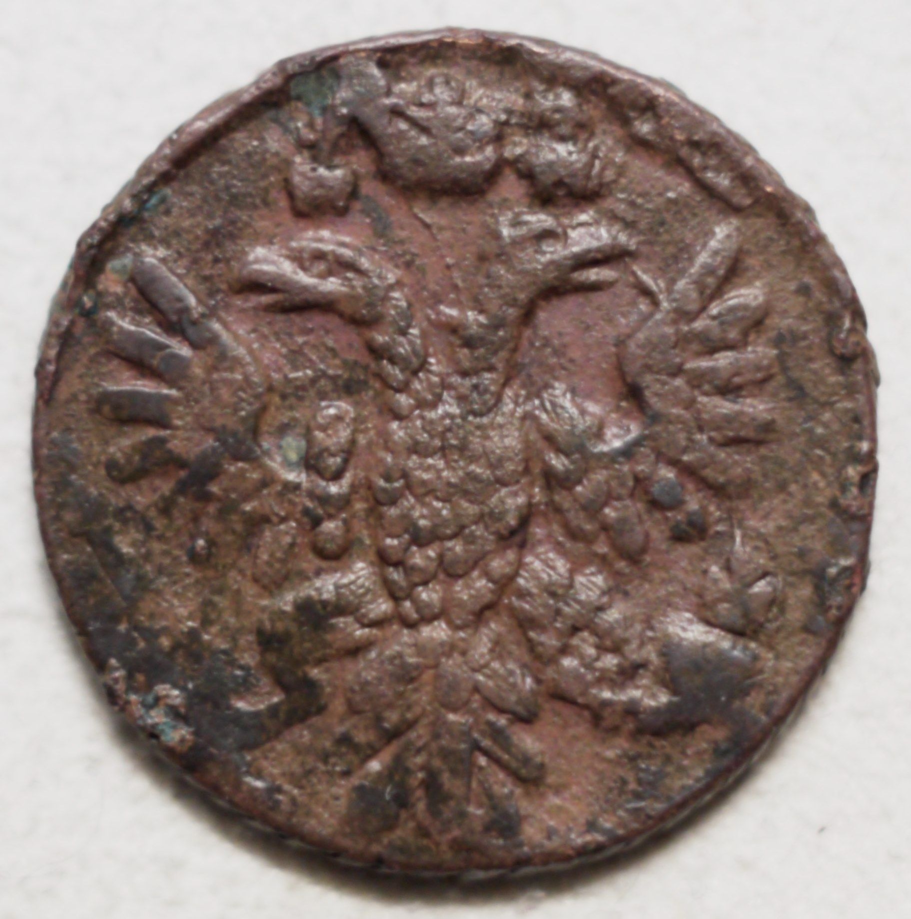 Юрий, доброго вечора. :) У ЦФН №23а два ключевых момента на штемпеле реверса. Это 1. боковые ветви - пять листочков в одной ветви и семь в другой и 2. бант набит наполовину. ;) Одноштемпельной №23а пока не нашел, чтобы быть уверенным, что бант действительно набит на половину. На реверсе Вашей полушки это хорошо заметно, несмотря на сдвоенный рисунок отдельных деталей штемпеля (монетный брак) при тиснении монеты. :scratch_one-s_head: Набитый не полный бант перевязи акантовых ветвей можно отнести к разновидности штемпеля, только при условии одноштемпельной монеты, где будет хорошо видно, что это не засор. Таким же будет ответ и по штемпельной разновидности с 5-ю и 7-ю листьями в лавровых ветвях. ;) Соответственно, будет и еще одна штемпельная разновидность, если на штемпеле будут эти две особенности присутствовать. Прилагаю фото двух полушек 1735 года с набивкой не полного банта. :hi: З повагою.