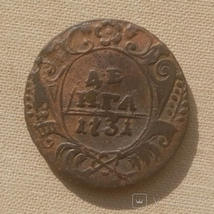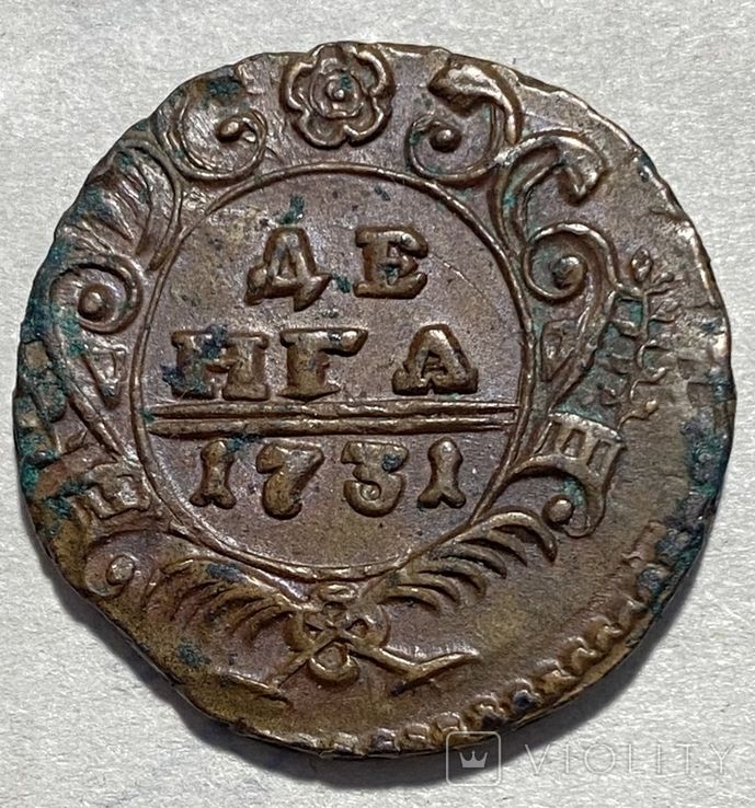 Доброго вечера. :) Недавний проход деньги перечекана, со слабыми следами от копейки Петра Алексеевича. Выпуска Красного монетного двора, 1731 года, Монета не из земли. 1-й шаблон реверса. Гурт сетчатый. Со старта в 1 гривну, через 15 ставок, достигла финишной цены в 450 грн. Проход на украинском аукционе 25.06.2025 года. Фото прилагаю. :hi: С уважением.