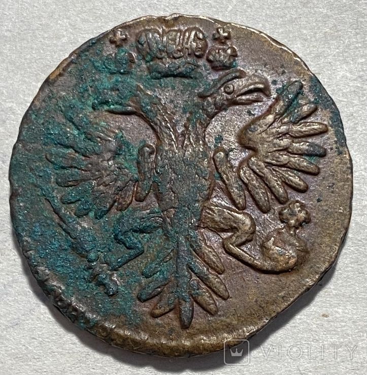 Доброго вечера. :) Недавний проход деньги перечекана, со слабыми следами от копейки Петра Алексеевича, выпуска Красного монетного двора, 1731 года. Аверс: орел с языками. 2-й шаблон реверса. Розетка особая. Монета из земли, хорошо реставрирована. Гурт сетчатый. Со старта в 1 гривну, через 15 ставок, достигла финишной цены в 221 грн. Проход на украинском аукционе 29.06.2025 года. Фото прилагаю. :hi: С уважением.