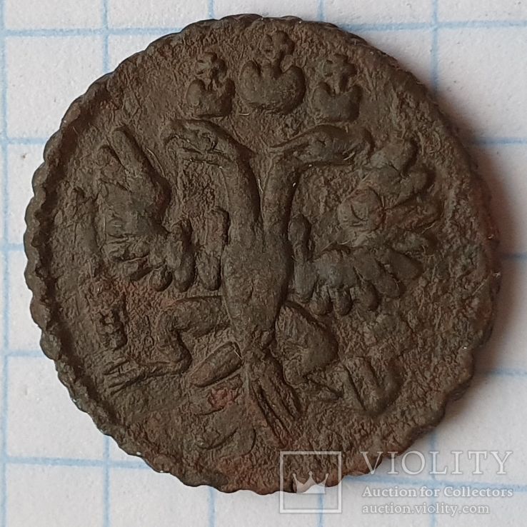 Сегодняшний проход на частого позднего перечекана деньги выпуска Временного монетного двора, Плащильная Мельница на р. Яуза, г. Москва, 1735 года из копейки Петра Алексеевича. Гурт сетчатый. Монета не из земли. Со старта в 1 гривну, через 19 ставок, достигла финишной цены в 1 779 грн. Проход на украинском аукционе 27.09.2025 года. Фото прилагаю.