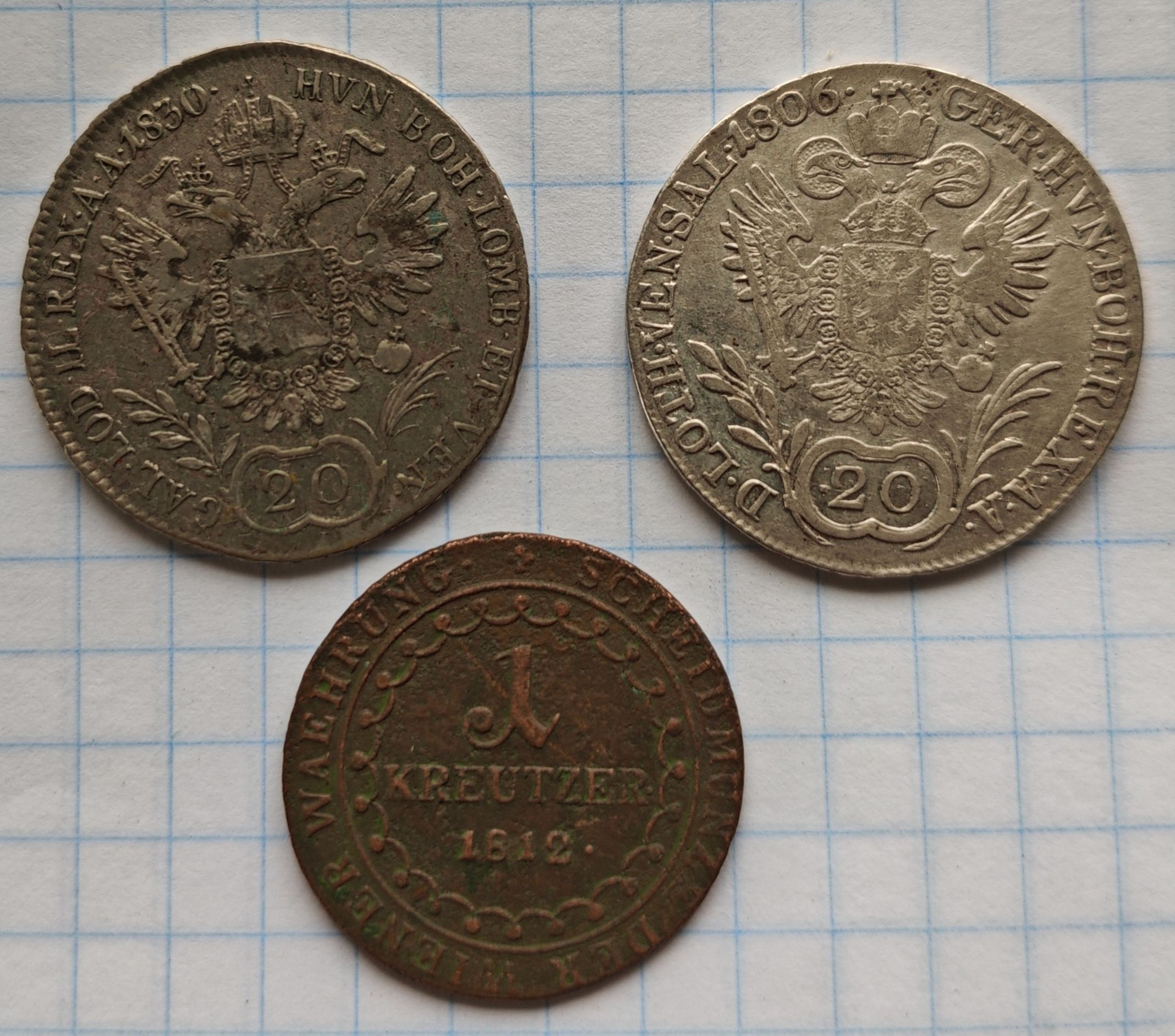 - крейцери 3 шт. 2 срібло, 1 мідь;