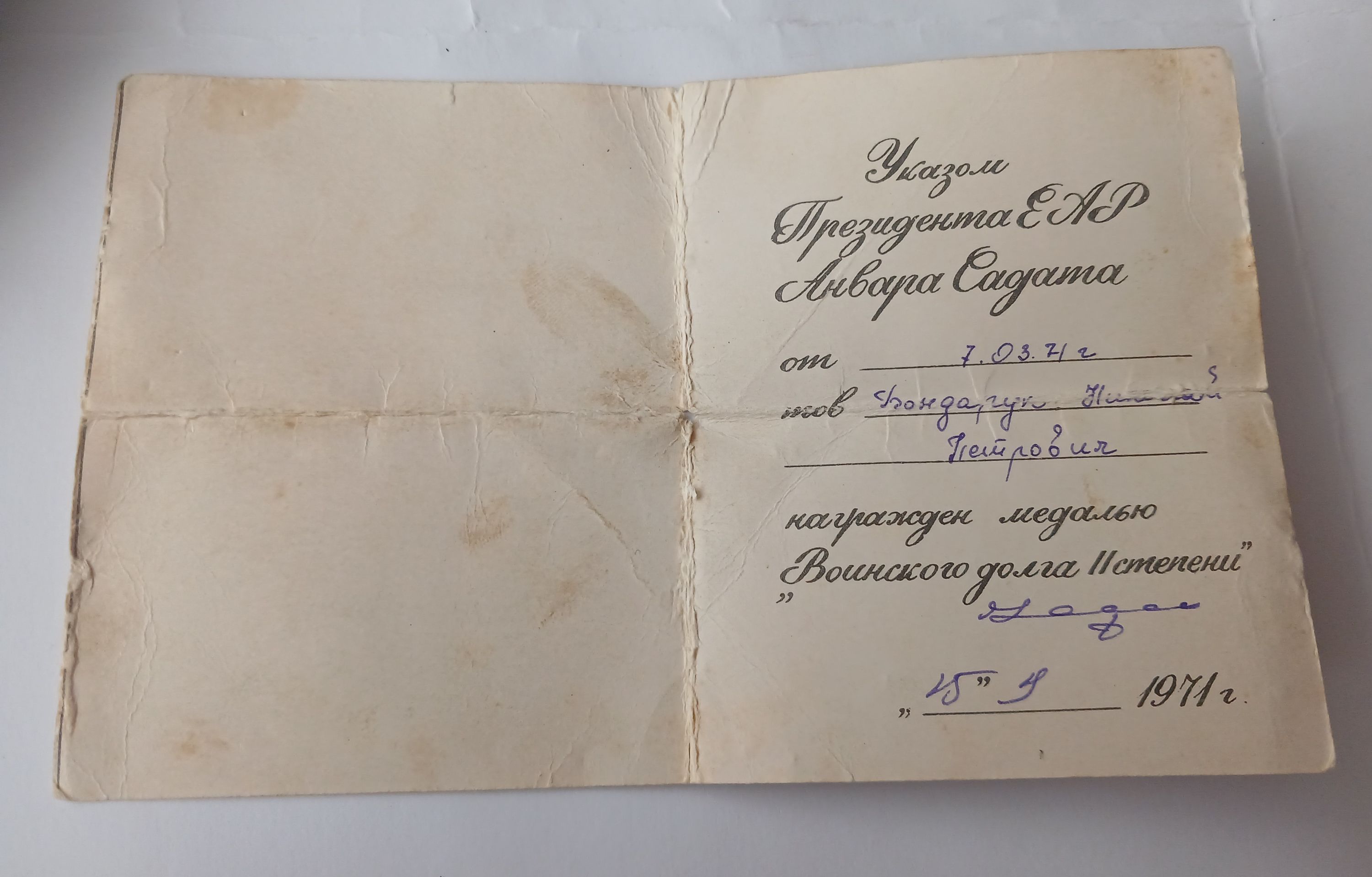 За військові заслуги, Єгипет, з документом на радянського спеціаліста